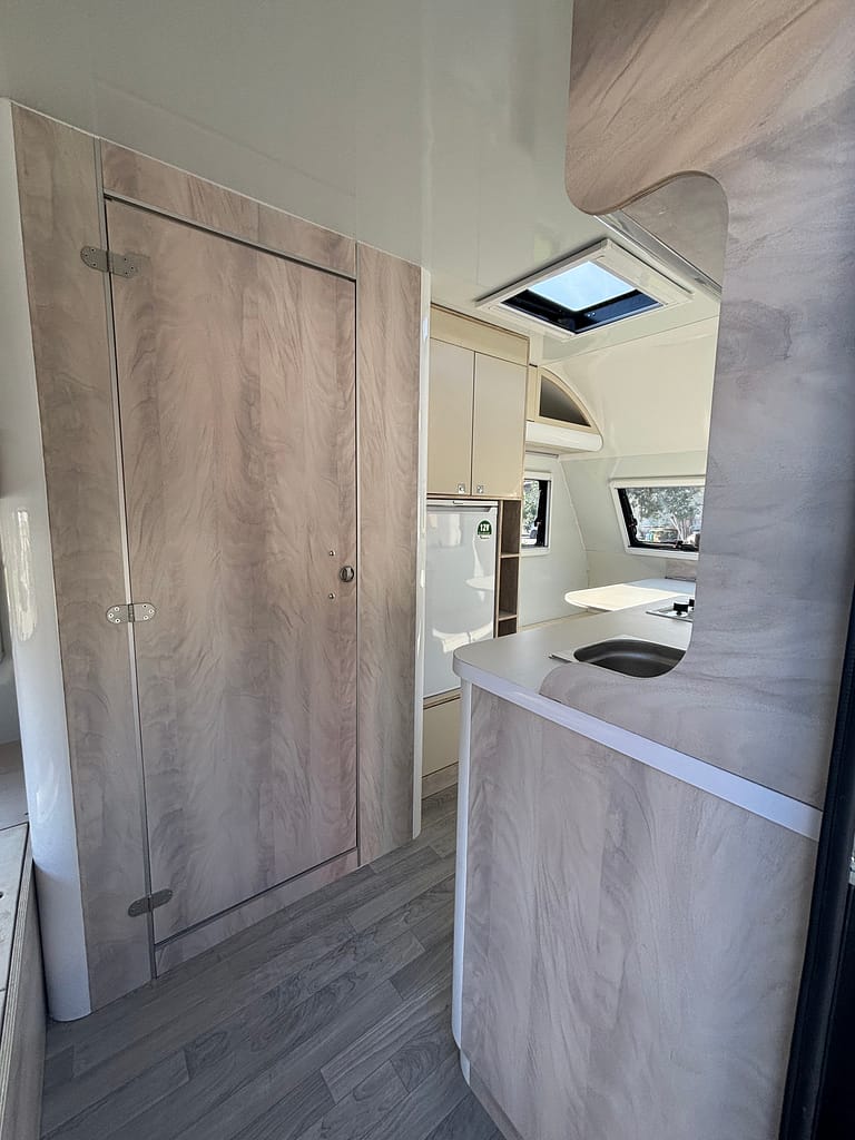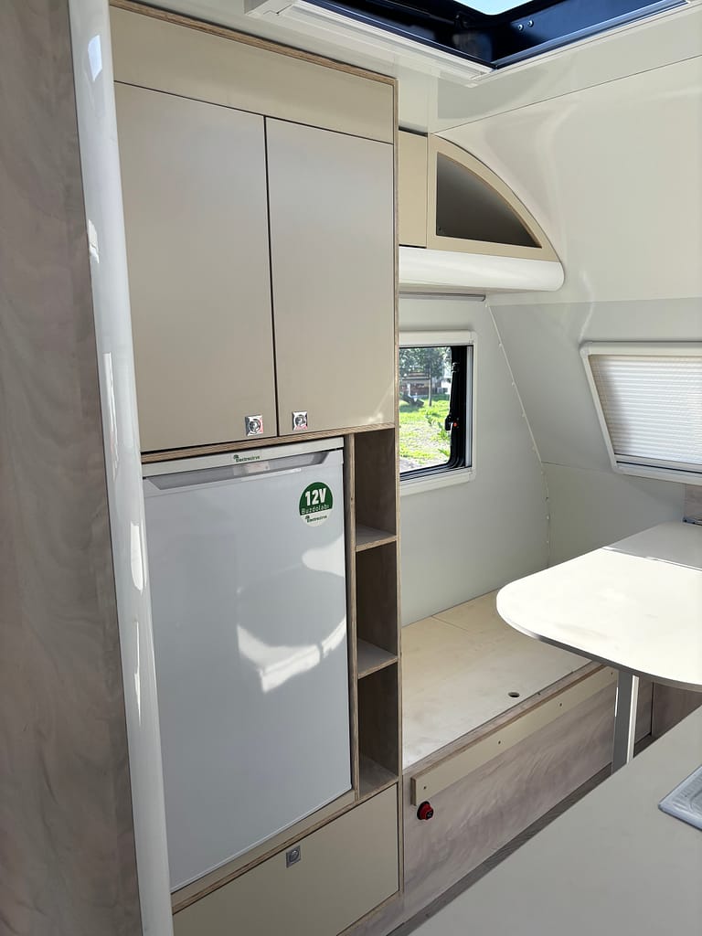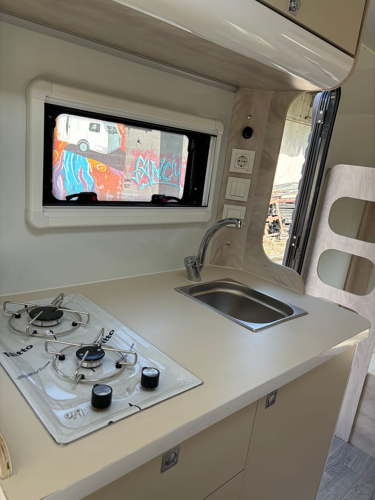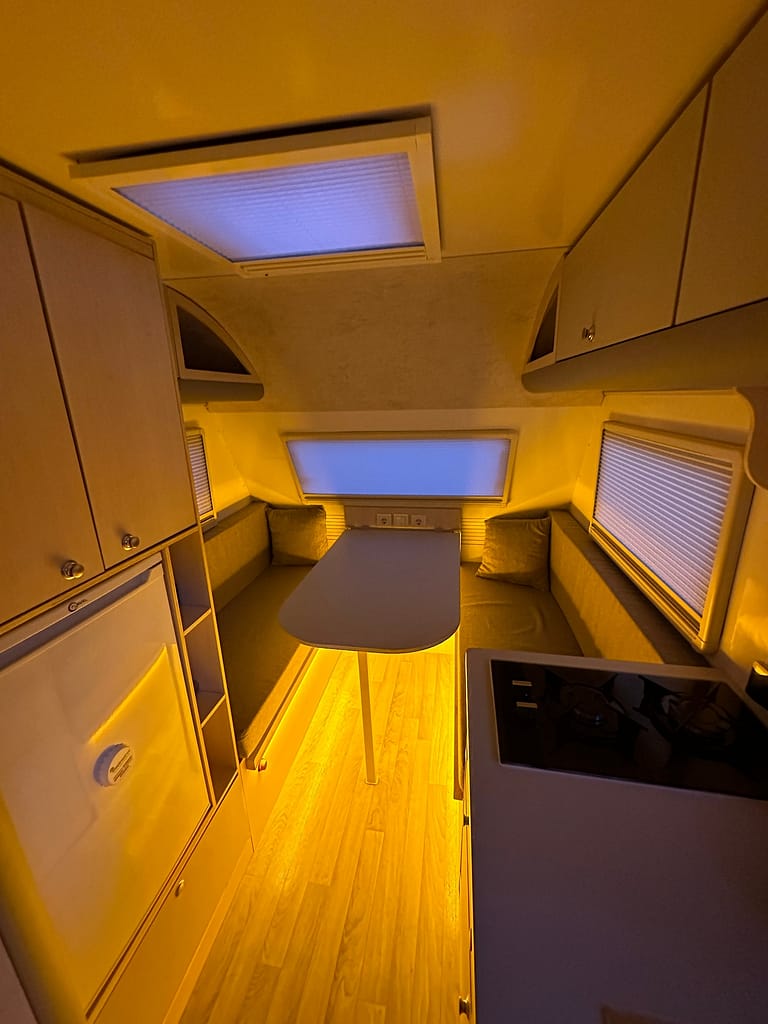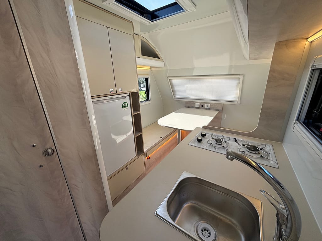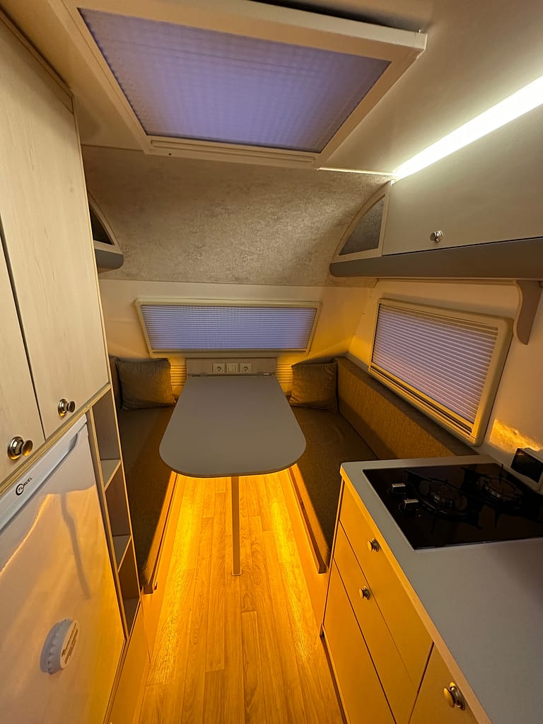 Kaliteden taviz vermeyen yüksek profilli üretim anlayışı çerçevesinde tamamı yuvarlatılmış dönüşlerle şekillendirilen mobilya elemanları bir karavanda ihtiyacınız olabilecek tüm detaylara sahip. Arka bölümde yer alan ranza ve ön taraftaki çift kişilik yatağı onu 4 kişilik bir ailenin vazgeçilmezi yapmaya aday.